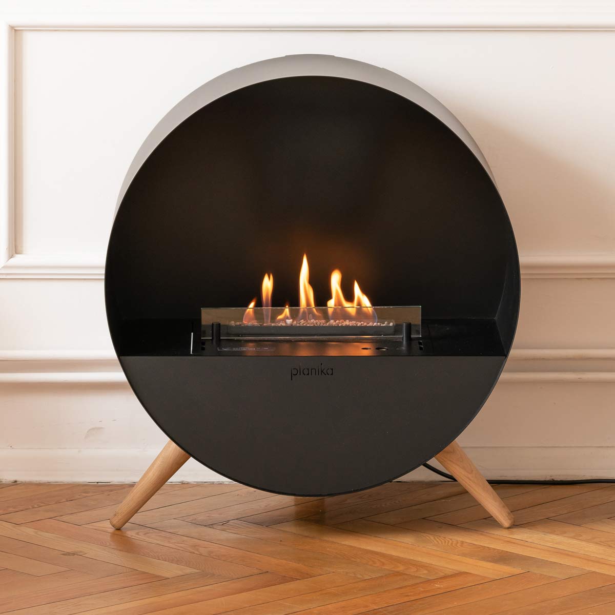 Avec ses 2000 W de puissance calorifique et un réservoir d’une capacité de 1,5 litre, Aeris est en mesure de chauffer efficacement une pièce de 20 à 30 m² pendant environ 5 heures. Il vous est possible d’ajuster l’intensité des flammes en réglant l’ouverture du brûleur à l’aide de la tirette.